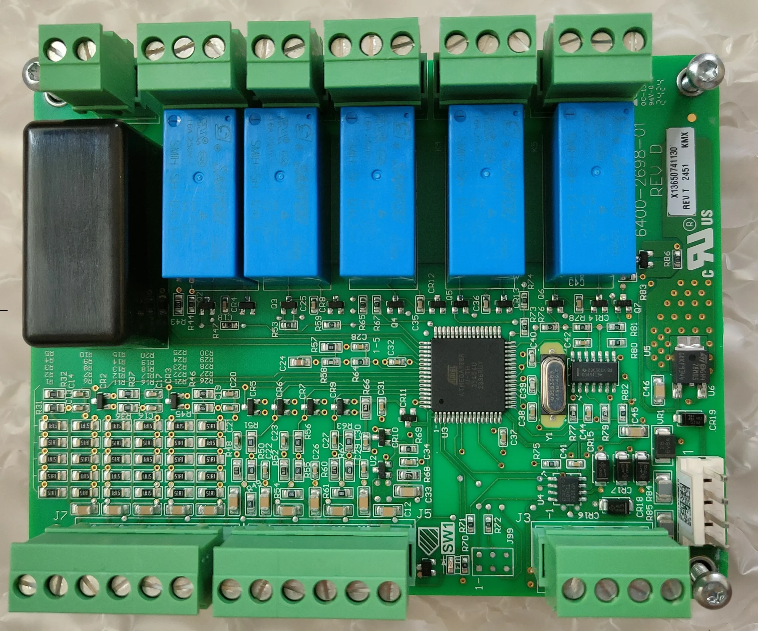 The Trane BRD04877 Relay/Starter Board is a factory-engineered OEM control module featuring quad relay outputs, enabling control of multiple high-power circuits—such as compressors, fans, pumps, or starters—using low-voltage signals from the system controller.