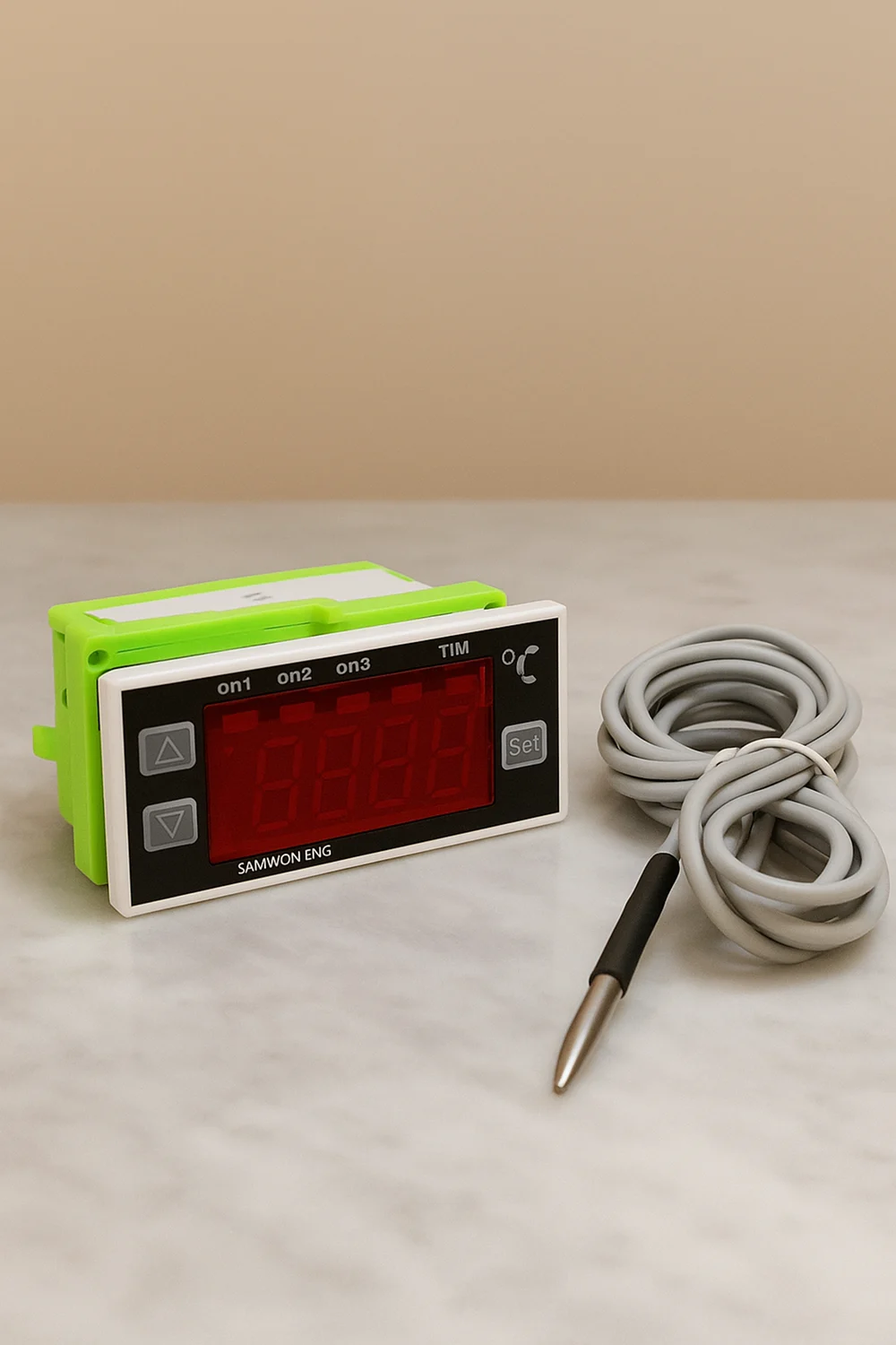 The SAMWON ENG SU-103S is a high-performance temperature controller engineered for precise thermal regulation in dynamic environments. Designed and manufactured in Korea, this compact unit is built to deliver reliable operation with easy-to-read digital LED display and flexible configuration options.